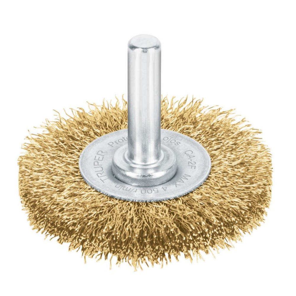 Ismerje meg a TRUPER CA-2F finom drótkorongot, amely ideális különféle felületek polírozásához és festékmaradványok eltávolításához. Ez az eszköz tartós, sárgarézzel bevont acélból készült drótkorongot tartalmaz, amely hatékony és finom tisztítást biztosít.
