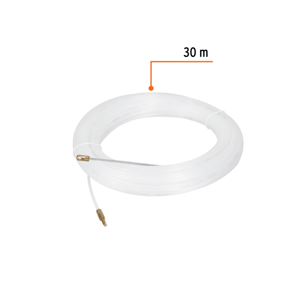A TRUPER GNY-30 behúzó spirál kiválóan alkalmas kábelek és vezetékek szerelőcsatornákban történő húzására. Az eszköz könnyen kezelhető, és a sárgaréz húzó- és keresőhegy biztosítja a pontos és gyors telepítést. A 30 méteres hosszúság és a 3 mm-es átmérő elegendő kapacitást biztosít a legtöbb feladathoz, míg a 120 kg-os szakítószilárdság garantálja a megbízhatóságot és a biztonságot.